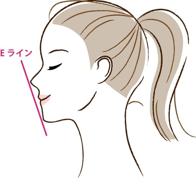 下唇が前に出ていると、顔のバランスに欠かせない「Eライン」(鼻先から顎先を結ぶライン)が崩れてしまいます。