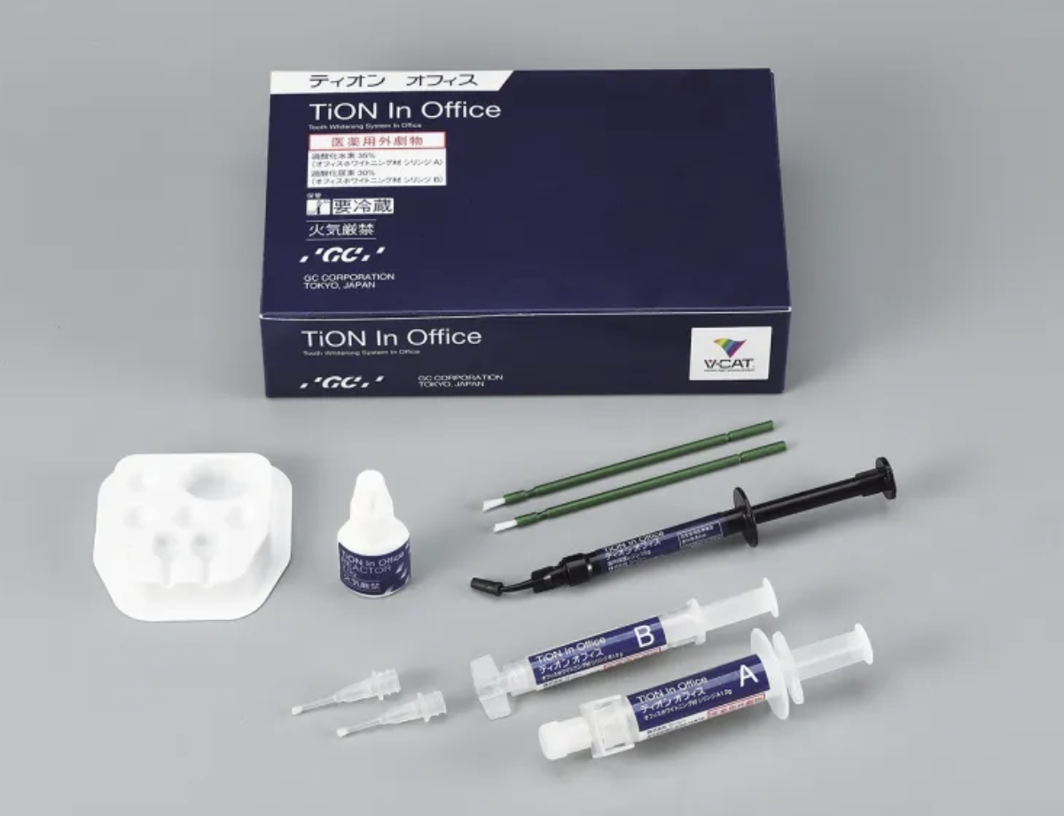 Tion(ティオン)ホワイトニングは、国内歯科メーカーのGC(ジーシー)が開発した歯科専売のホワイトニングシステムです。歯科医院専用として提供されており、安全性と効果のバランスに優れていることから、多くの医院で導入されています。