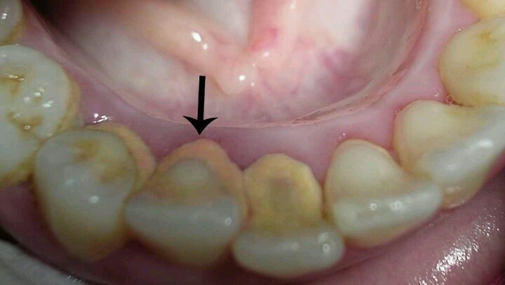 ・歯肉縁上歯石:歯茎の上に形成される白っぽい歯石