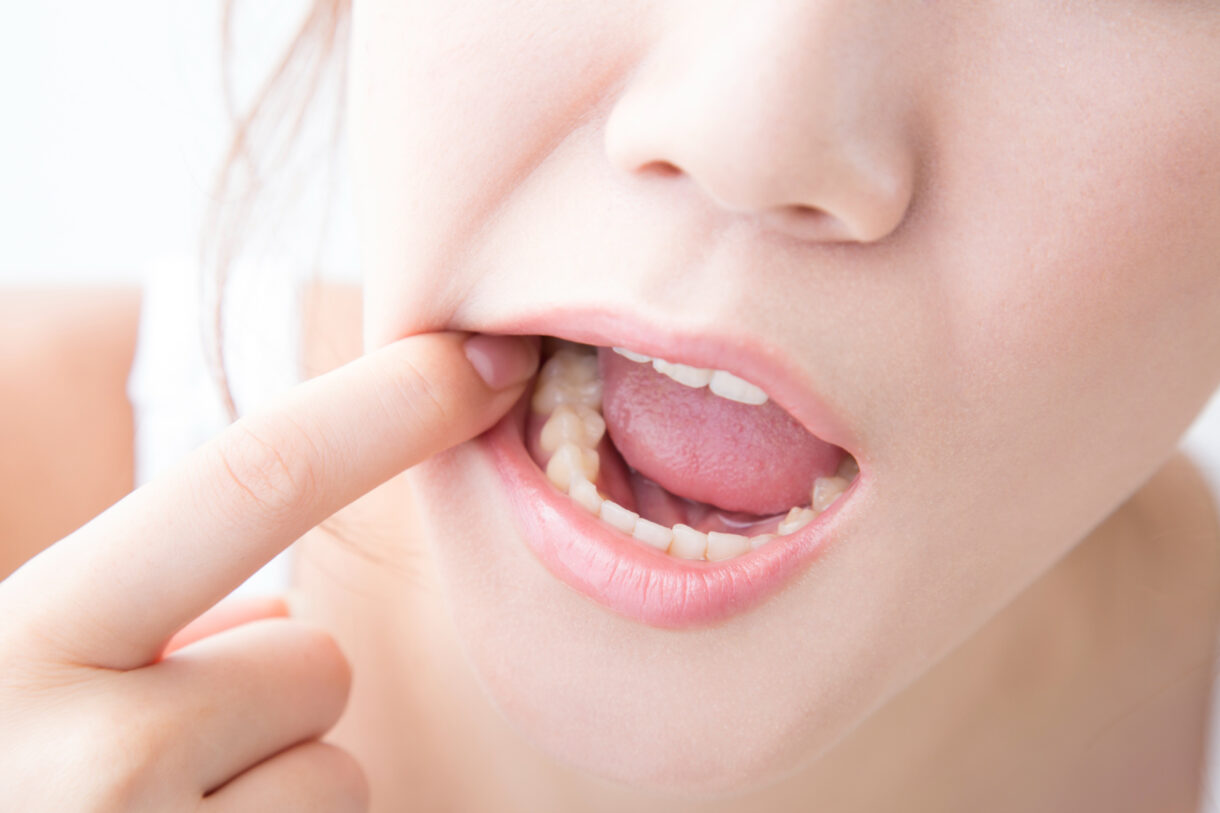 カンジダ性口内炎は、口の中が不衛生な状態が続き、カンジダ菌というカビの一種が繁殖することで起こる口内炎です。矯正器具の装着により食べ物の残りカスなどが溜まりやすくなると菌の繁殖が促され、カンジダ性口内炎が起きるリスクが高まります。