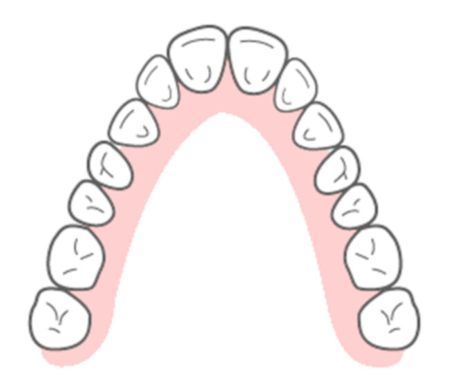 上顎が横に狭いと、歯列がV字型に細くすぼんだ形になり、奥歯が内側へ倒れ込んでしまうことがあります。