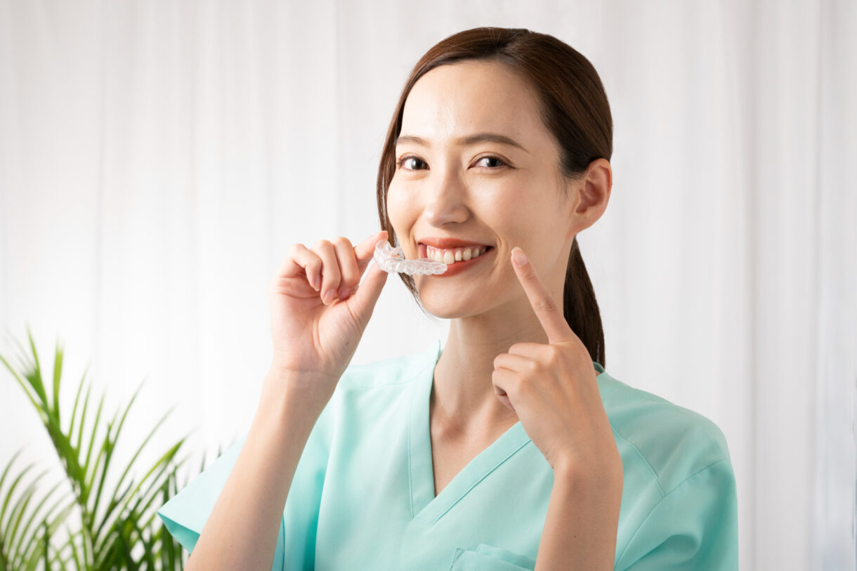 | マウスピース矯正 | ・装置が透明で目立ちにくい ・食事や歯磨きのときに簡単に取り外せる ・比較的痛みや違和感が少ない | ・症状によっては適用できない ・1日20時間以上装着しないといけない ・飲食のたびに取り外す必要がある |