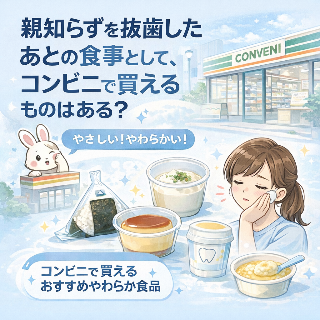 特に抜歯当日〜数日間は、痛みや腫れだけでなく、食べ物の選び方ひとつで回復に差が出ることもあります。普段コンビニなどで食事を済ませている方、抜歯部に痛みなどがあり自分で作るのは大変だと思っている方はコンビニを利用することもあるでしょう。