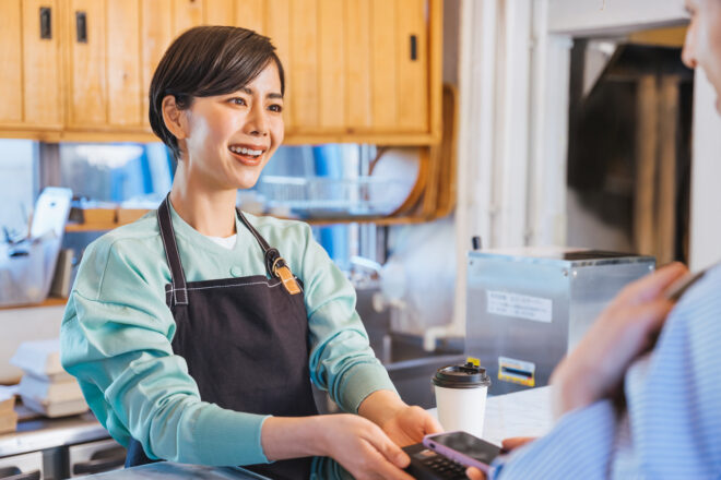 接客中は、語尾をハッキリ発音することを意識するだけでも聞き取りやすさが大きく変わります。声のトーンを少し上げると、音の輪郭が出やすくなり、滑舌の乱れをカバーしやすくなります。