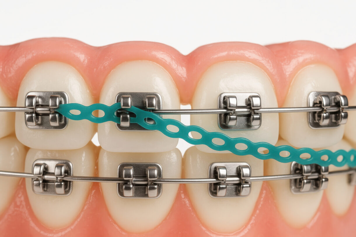 歯や歯茎、装置の周りを傷つけにくい毛先の柔らかい歯ブラシを使い、丁寧に磨くのがポイントです。ブラケットの周囲やパワーチェーンの下など細かい部分は、タフトブラシや歯間ブラシを併用して汚れを落としてください。