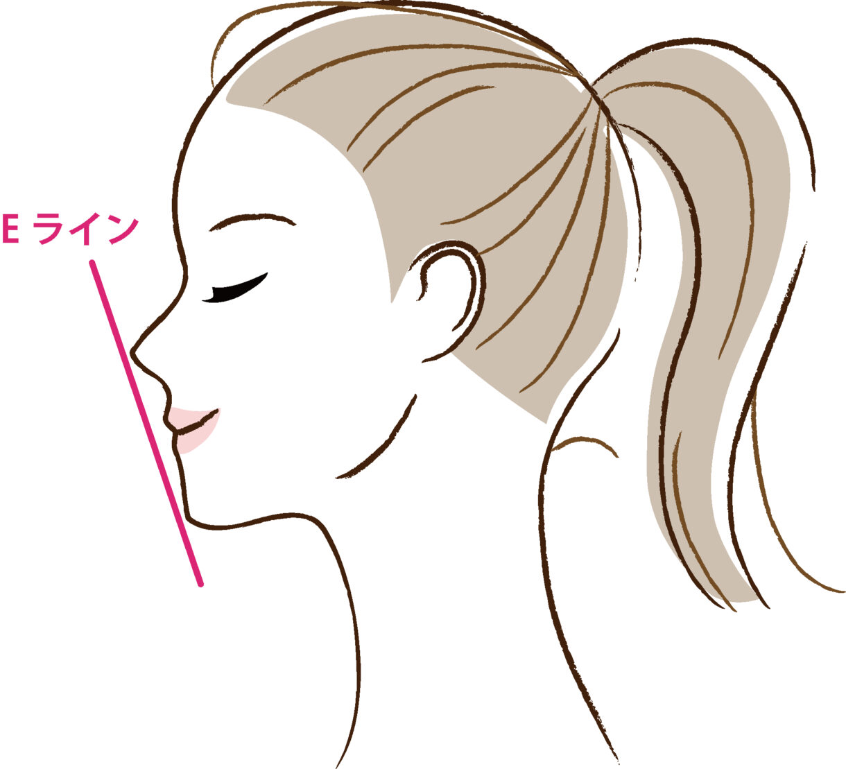 横顔の顎先と鼻先を結んだ直線は「Eライン」と呼ばれており、このライン内に唇が収まった状態が美しいとされています。